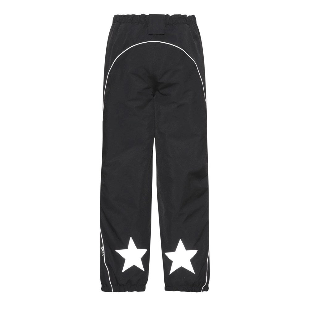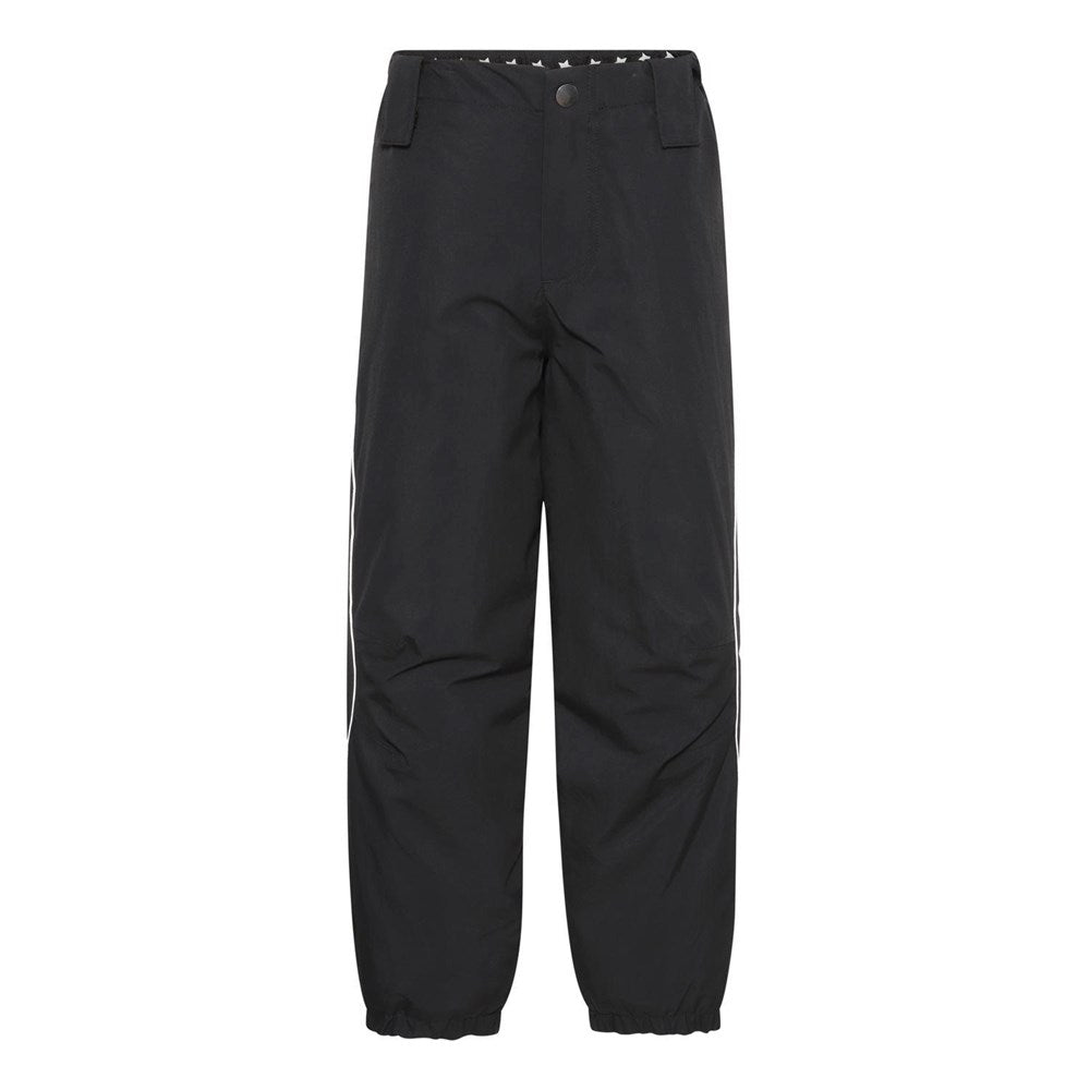 Fóðraðar Molo snjóbuxur. Buxurnar eru bæði vatnsheldar og vindþéttar með teipuðum saumum og endurskinsborða. Buxurnar hneppast í mittið.