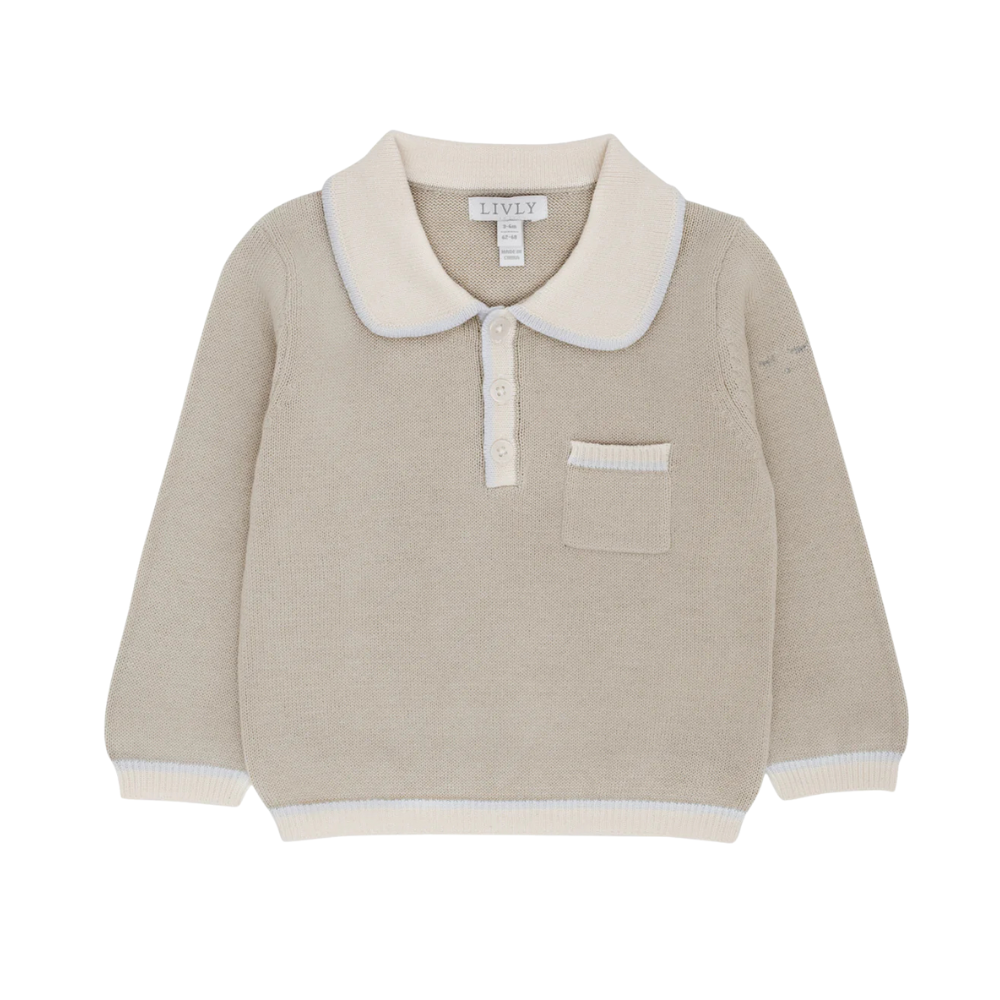 Falleg peysa með kraga frá sænska merkinu Livly. Peysan er úr mjúkri bómull. Tímalaus hönnun tryggir að hún passi auðveldlega við hvaða tilefni sem er og bætir við fáguðum en samt afslappaðum blæ í fataskáp barnsins.