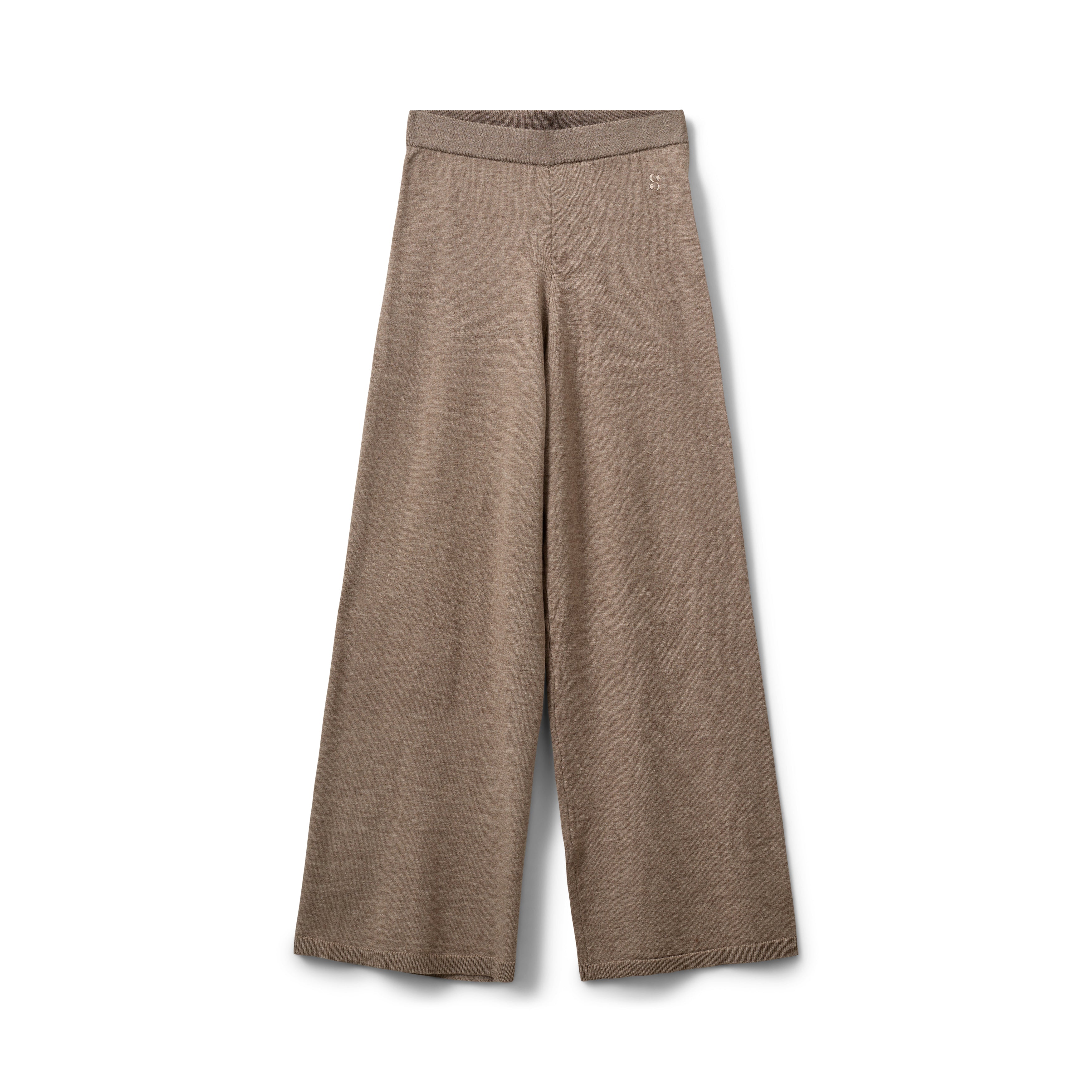 Mjúkar, ljós brúnar buxur frá Sofie Schnoor með víðum skálmum.