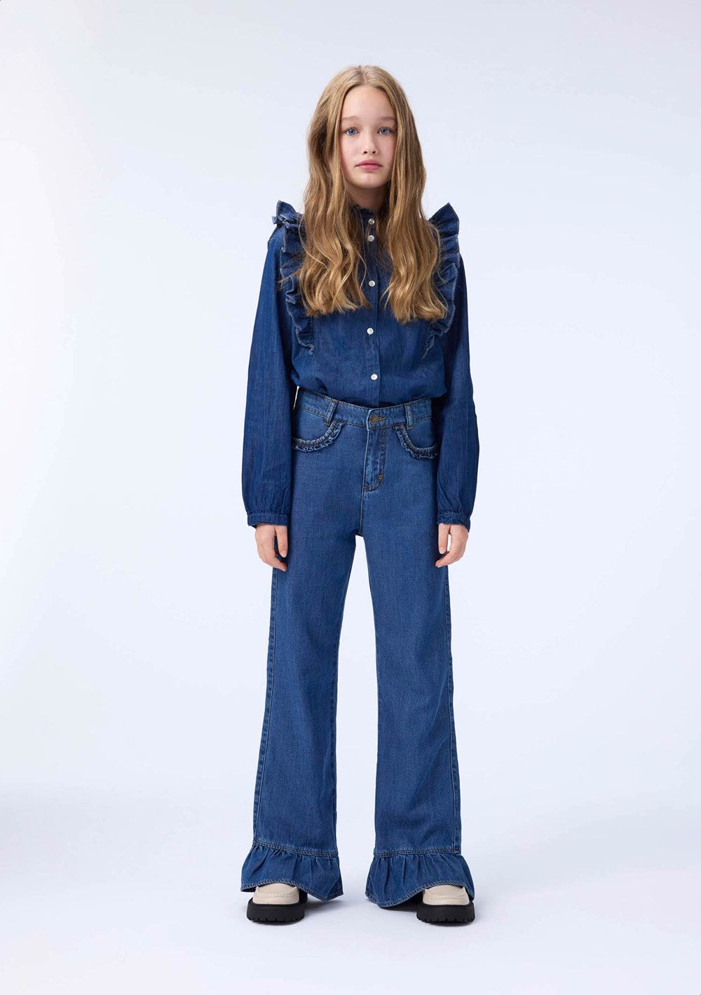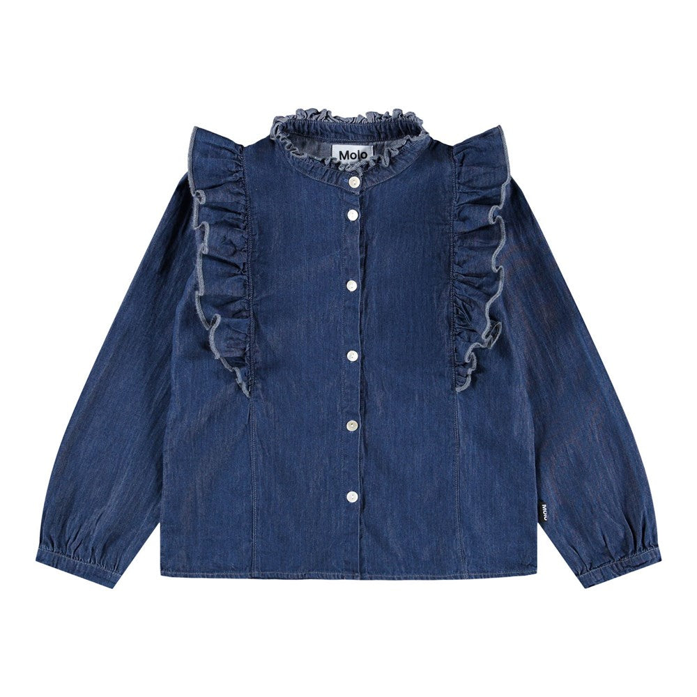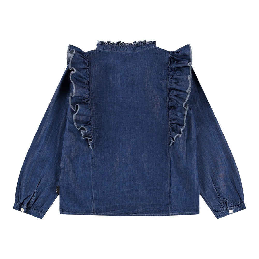 Falleg, hneppt gallaskyrta frá Molo með pífukanti við axlir.