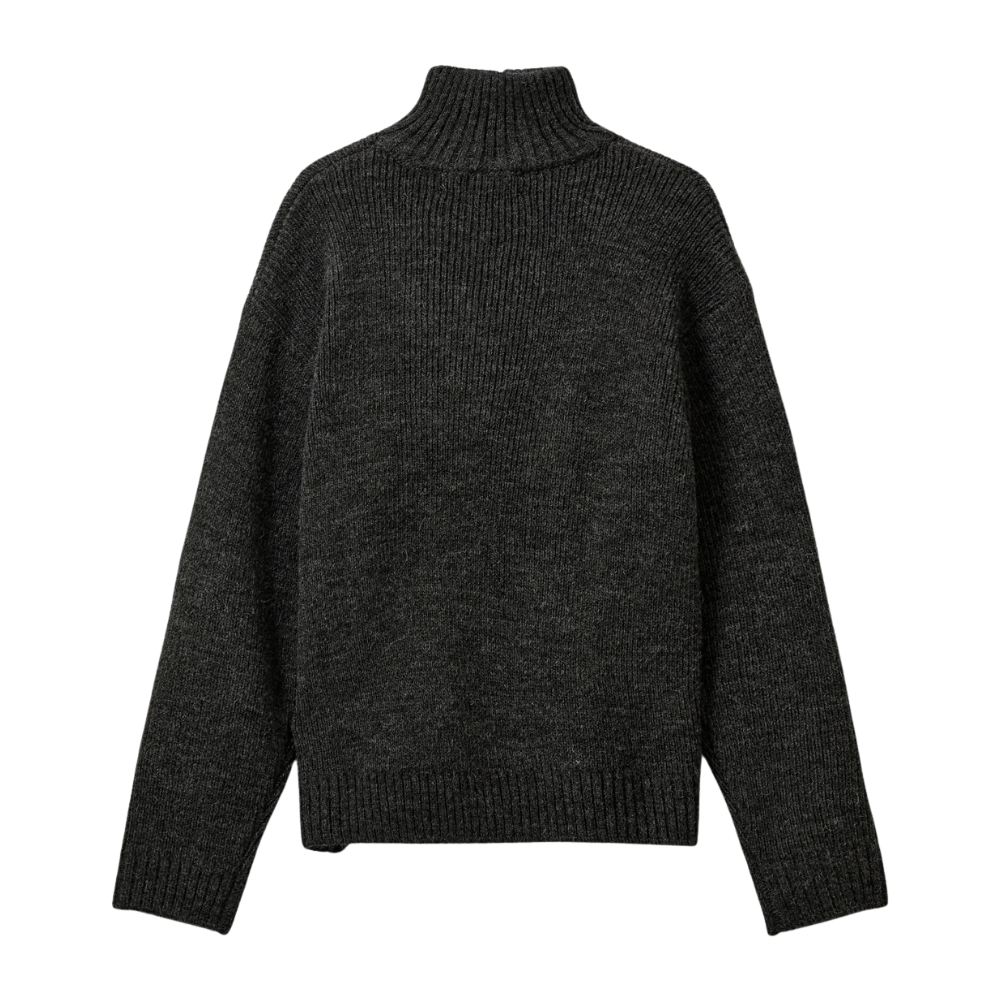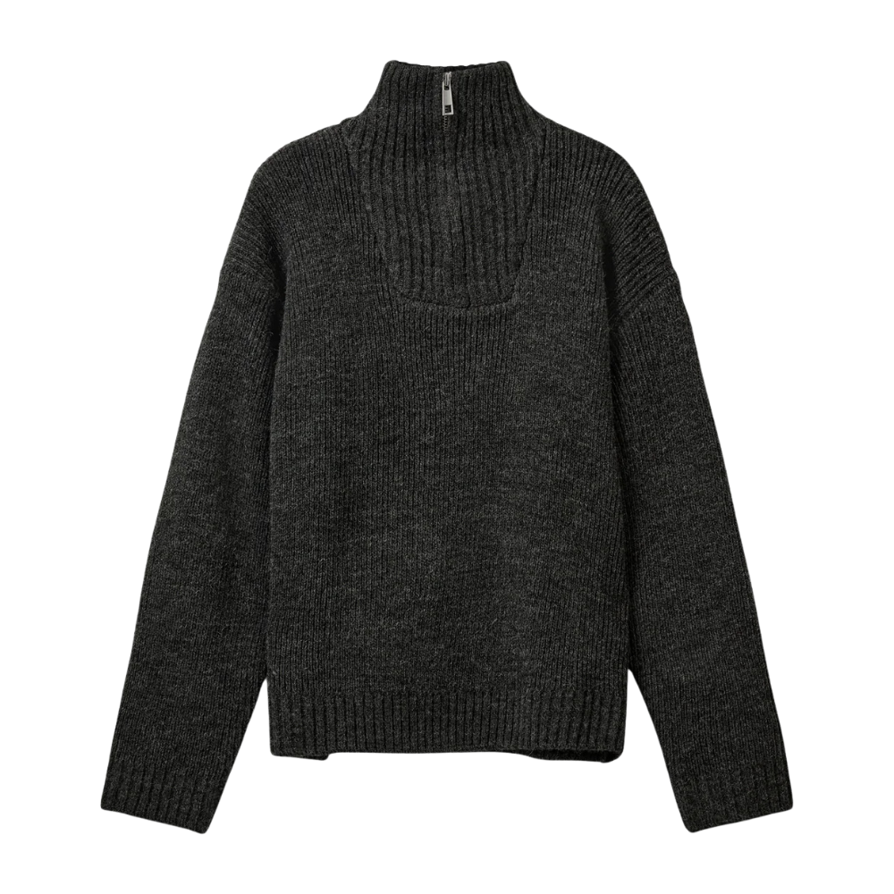 Dökk grá, hálf rennd prjónapeysa frá Sofie Schnoor.
