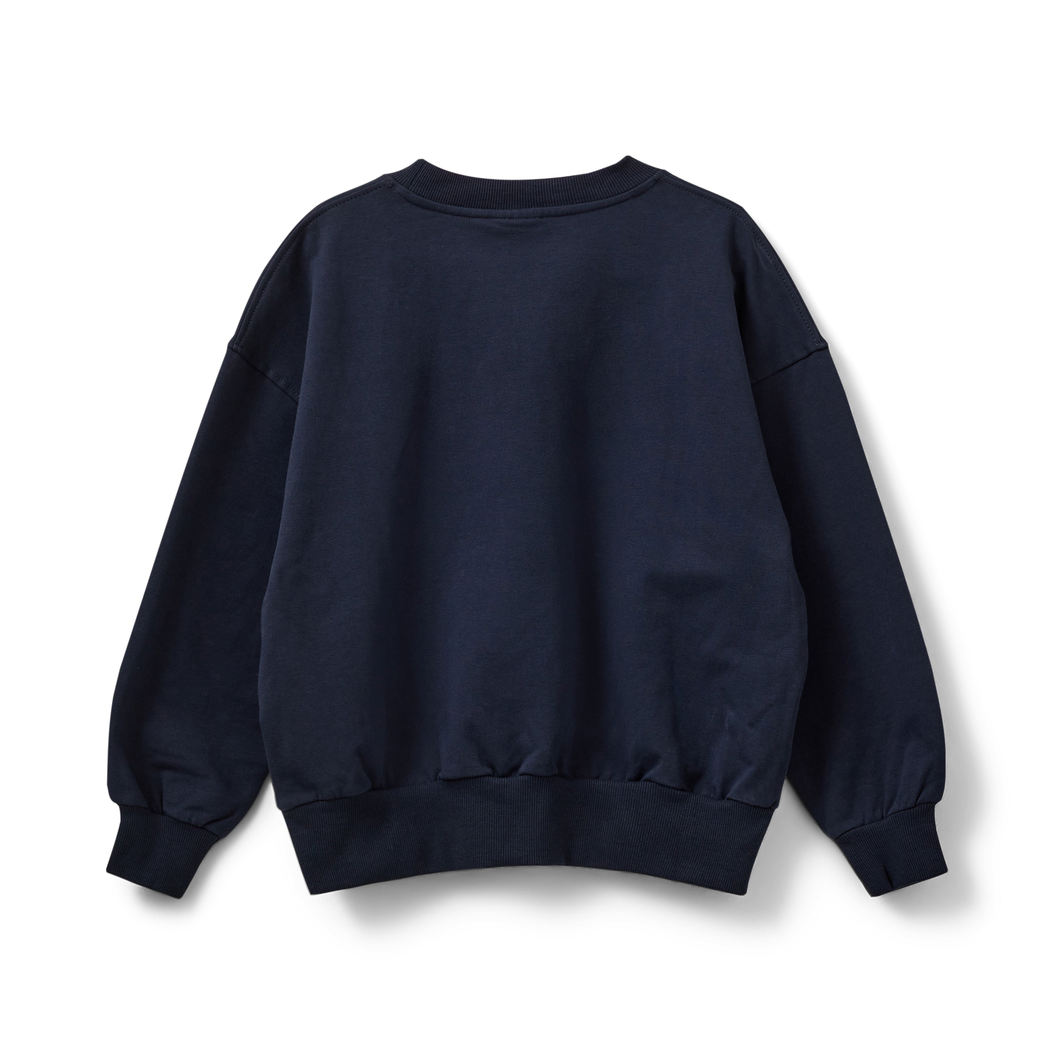 Dökk blá joggingpeysa frá Sofie Schnoor. Stroff við ermar og mitti.
