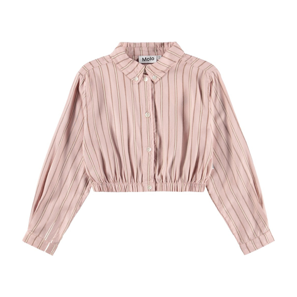 Röndótt, hneppt skyrta með kraga frá molo.