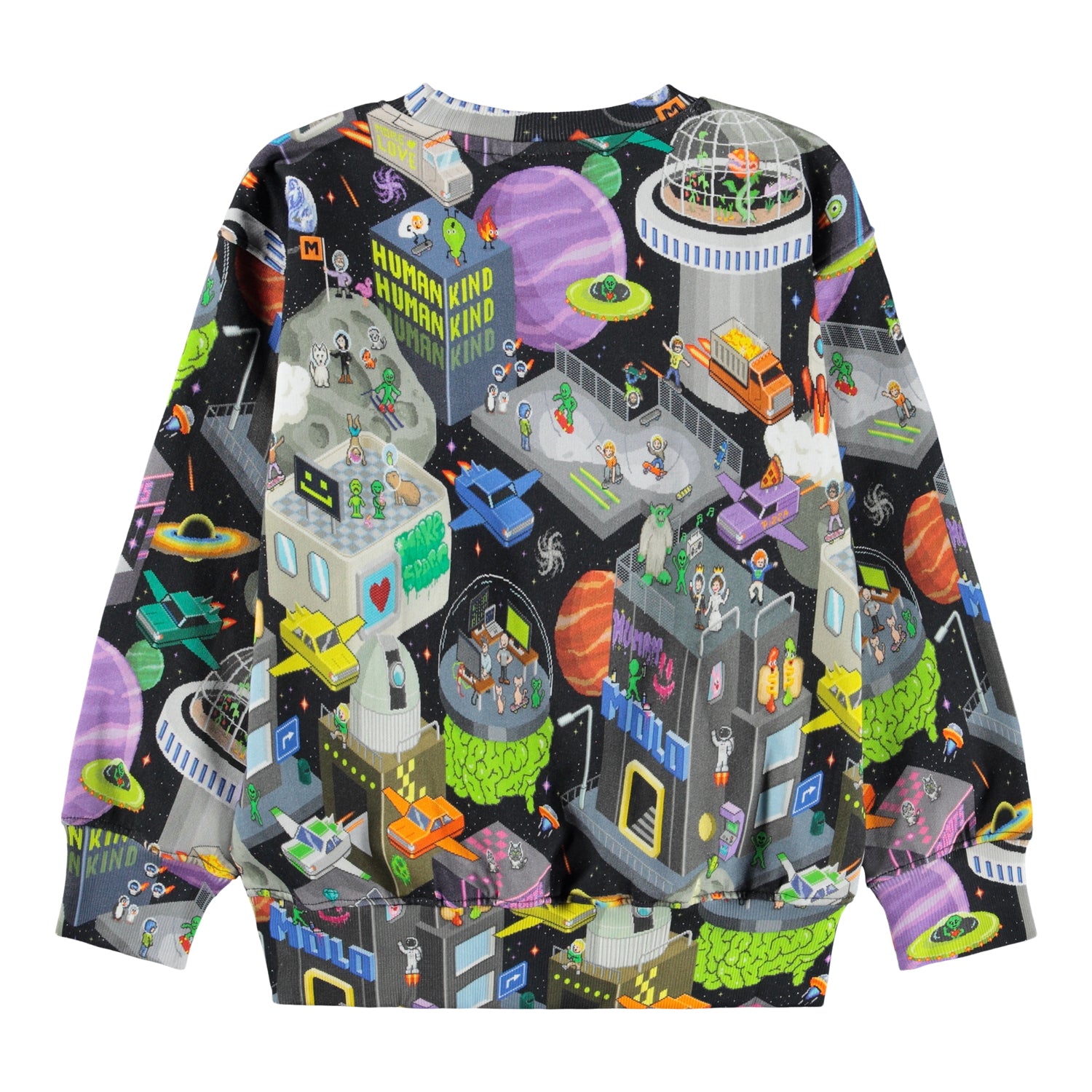 Mynstruð Molo peysa með stroffi við ermar og mitti.