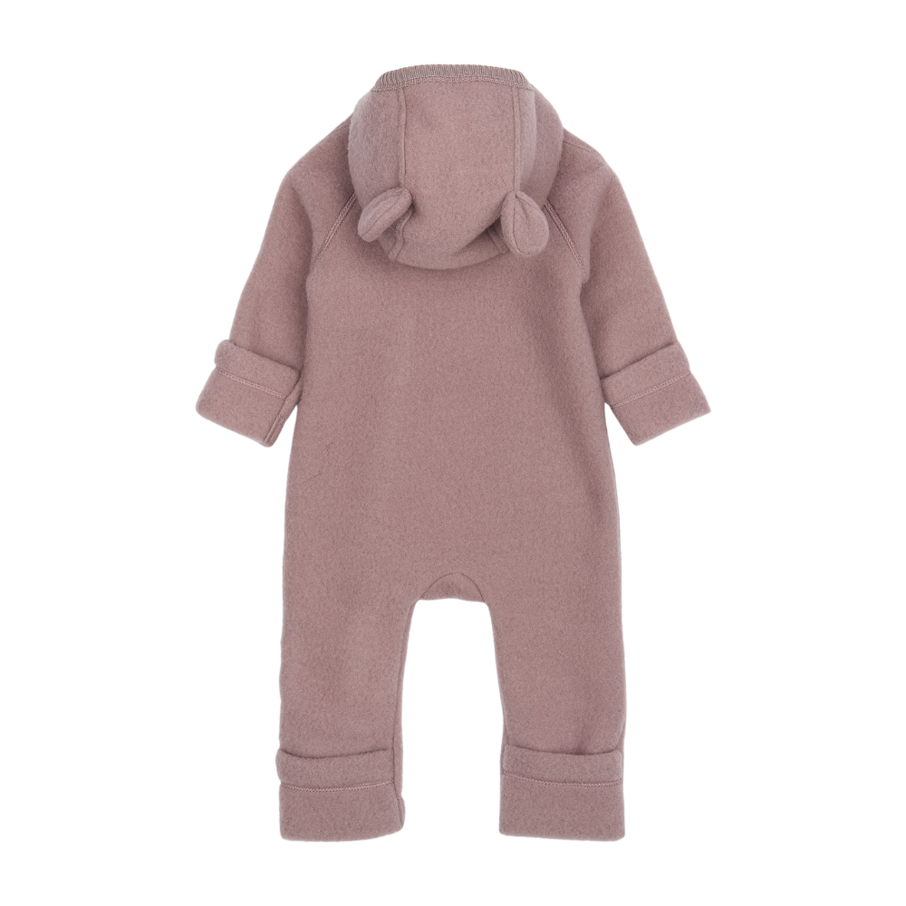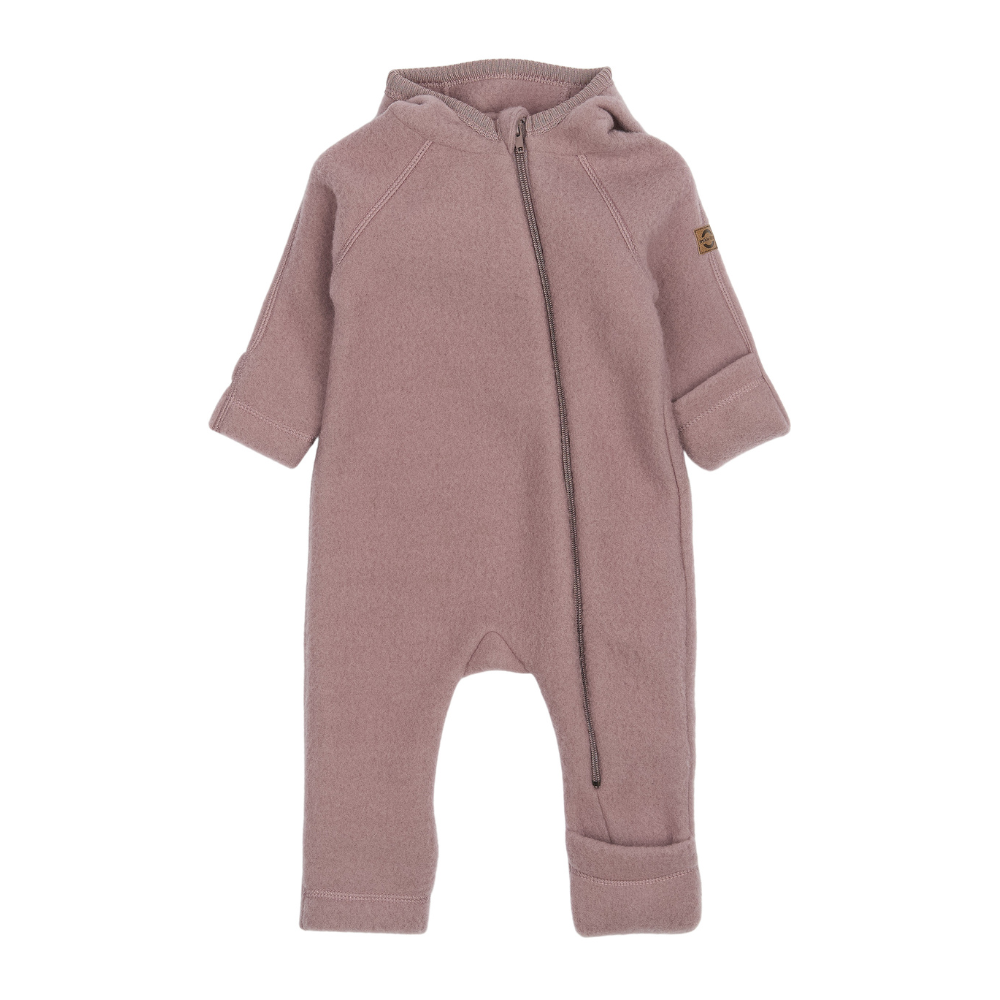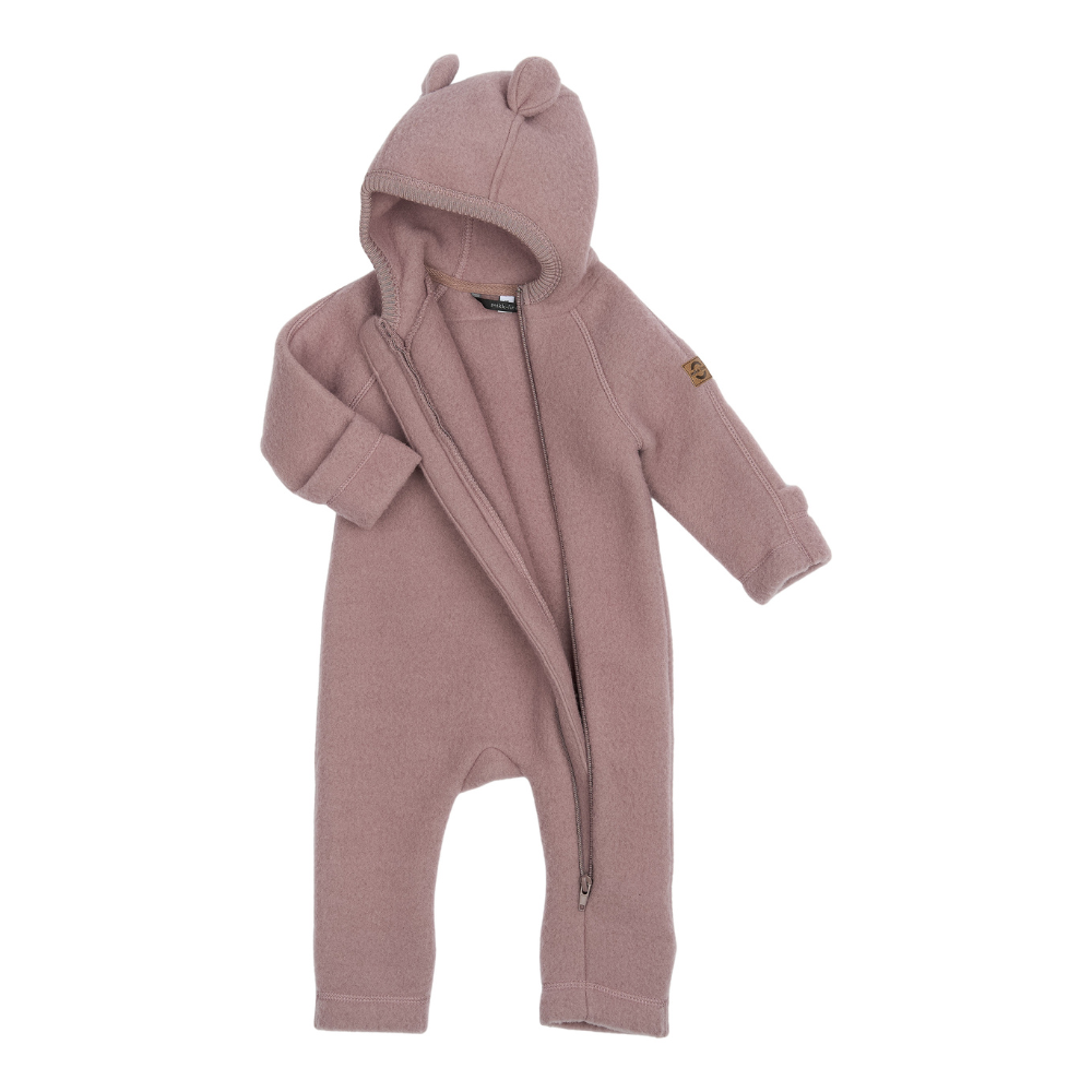 Dásamlegur ullar galli úr mjúkri merino ull sem andar. Gallinn er með hettu með eyrum sem gefur gallanum krúttlegt útlit. Snúningsermar og skálmar halda hita á litlum höndum og fótum.