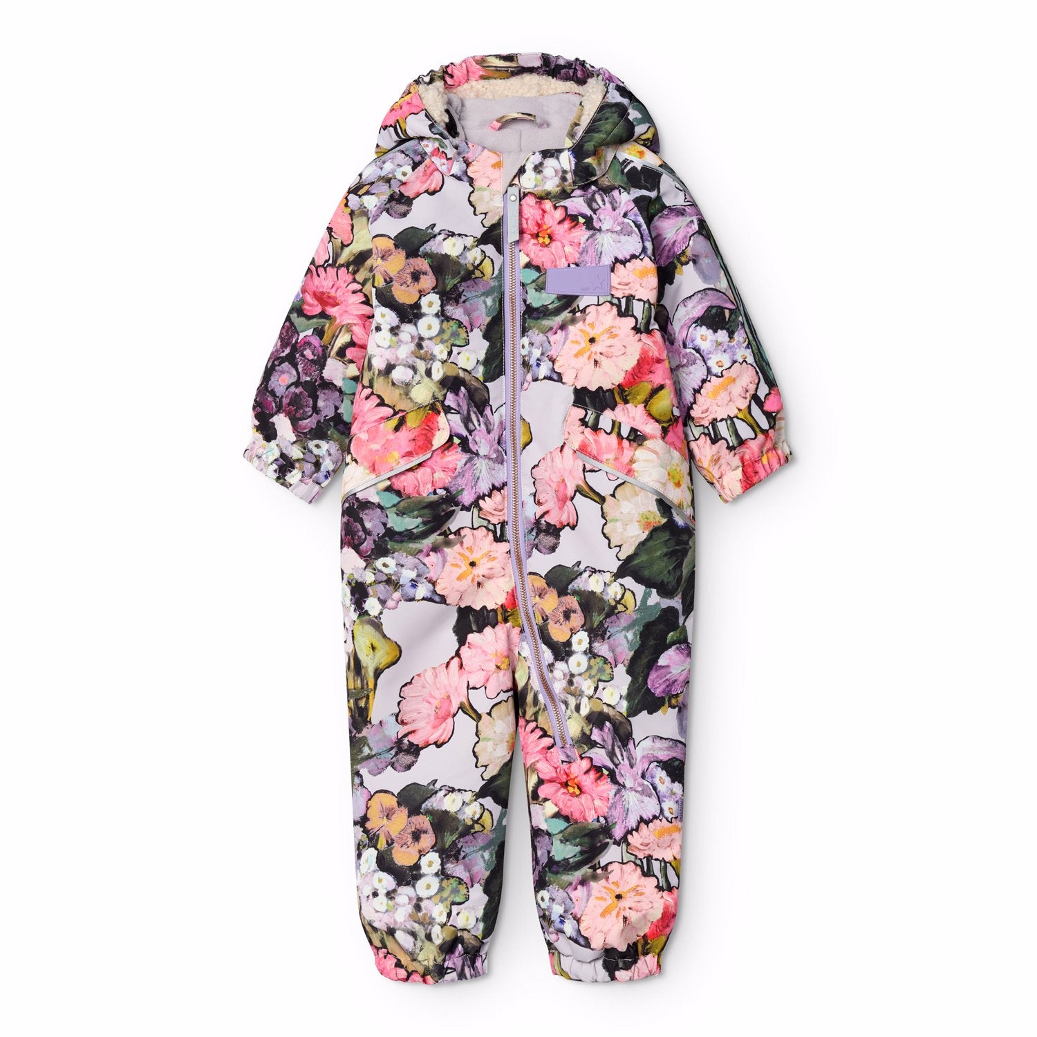 Mynstraður kuldagalli frá Molo fyrir yngstu börnin. Gallinn er bæði vindþéttur og vatnsheldur. Gallinn er renndur á hlið sem auðveldar að klæða barnið í og úr og gerir barninu að auki auðveldara fyrir að að klæða sig sjálft. Límdir saumar, 15.000mm vatnsvörn og 15.000 g/m2/24klst öndun. Sterkir endurskinsborðar og endurskinsmerki gera barnið sýnilegra.