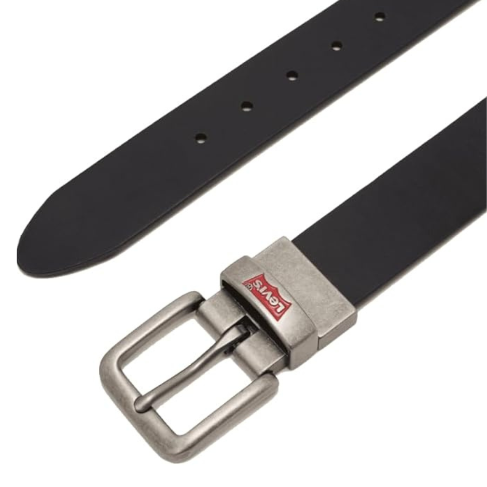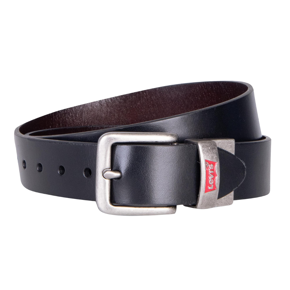 Svart leðurbelti frá Levi´s með silfurlitaðri sylgju.