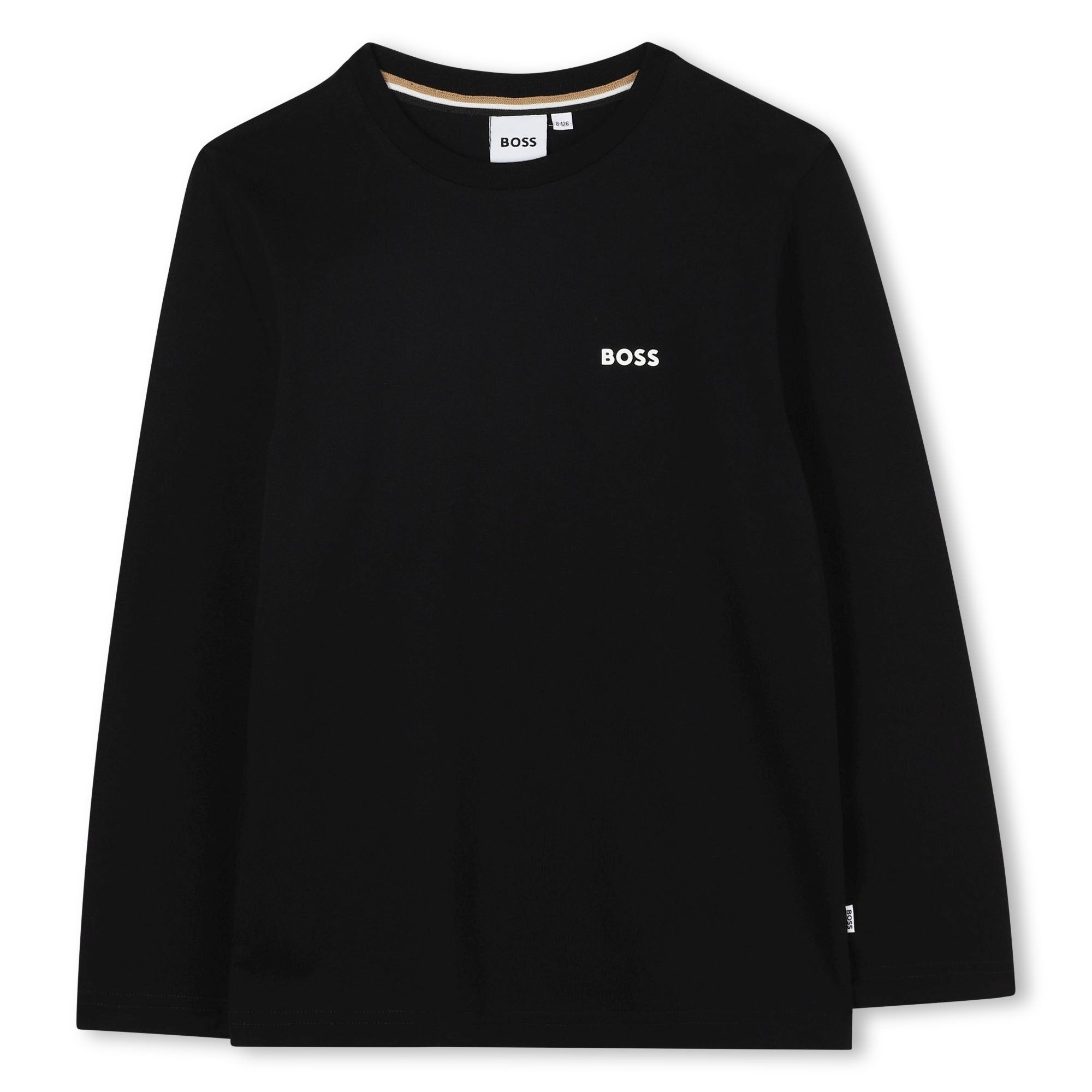 Svartur langermabolur frá Boss með litlu hvítu logo að framan.