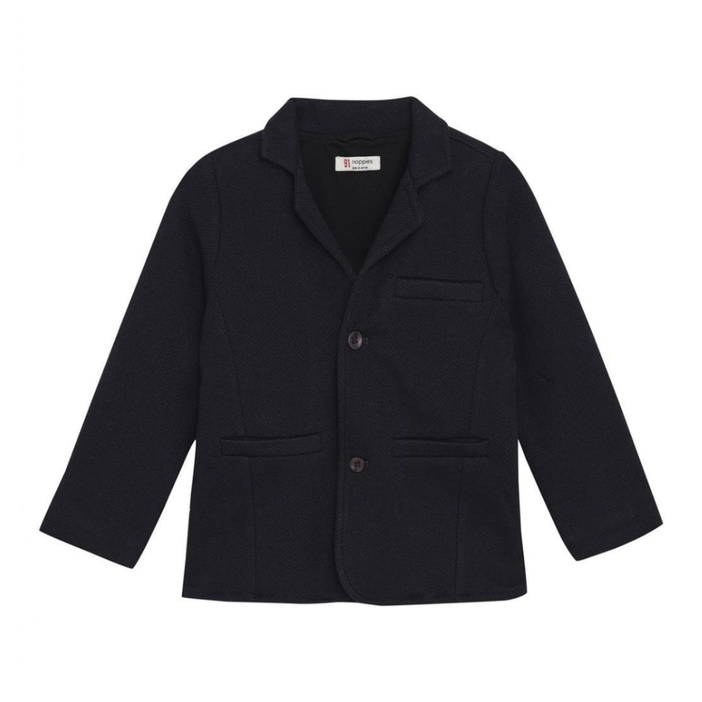 Fallegur, dökk blár, hnepptur jakki með kraga frá Noppies.