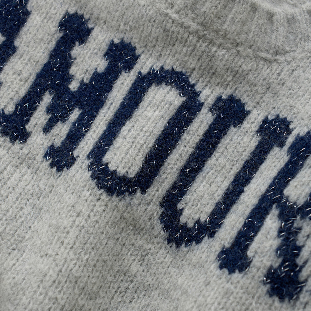 91% polyester, 5% ull, 2% elastane og 2% metallic yarn.