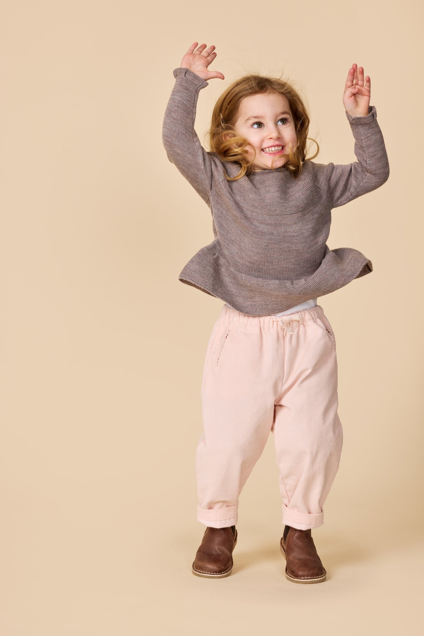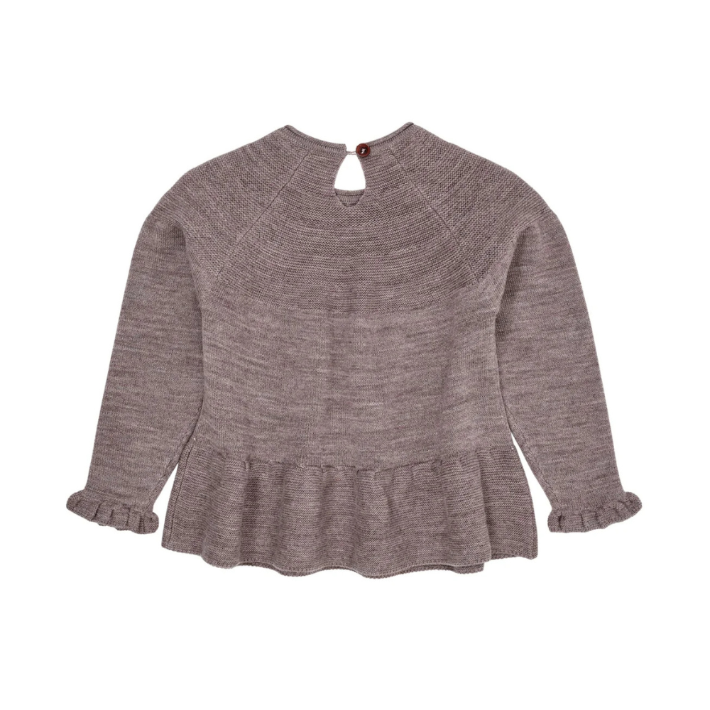 Dásamlega falleg prjónapeysa frá Copenhagen Colors úr merino ull. Peysan er með pífu við ermar og að neðan og er hneppt að aftan. Virkni, þægindi og hreyfigeta eru þættir sem hafðir eru að leiðarljósi við hönnun.