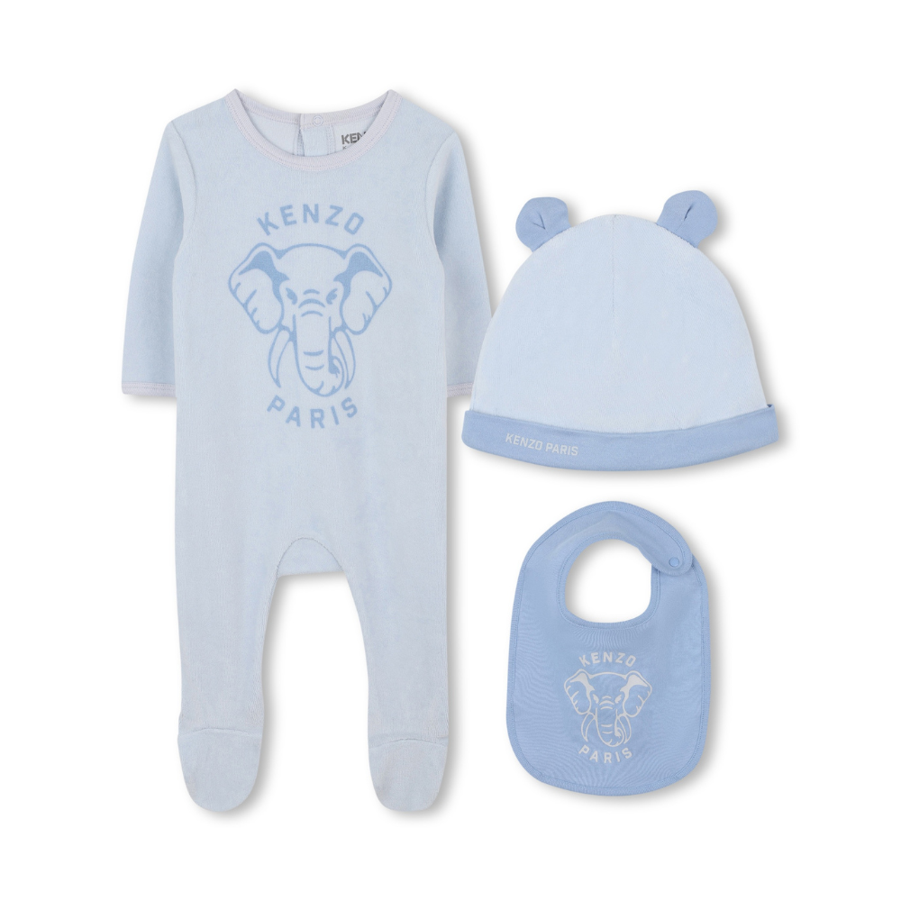 Fallegt ungbarna sett frá Kenzo sem inniheldur heilgalla með áföstum sokkum, húfu og smekk.