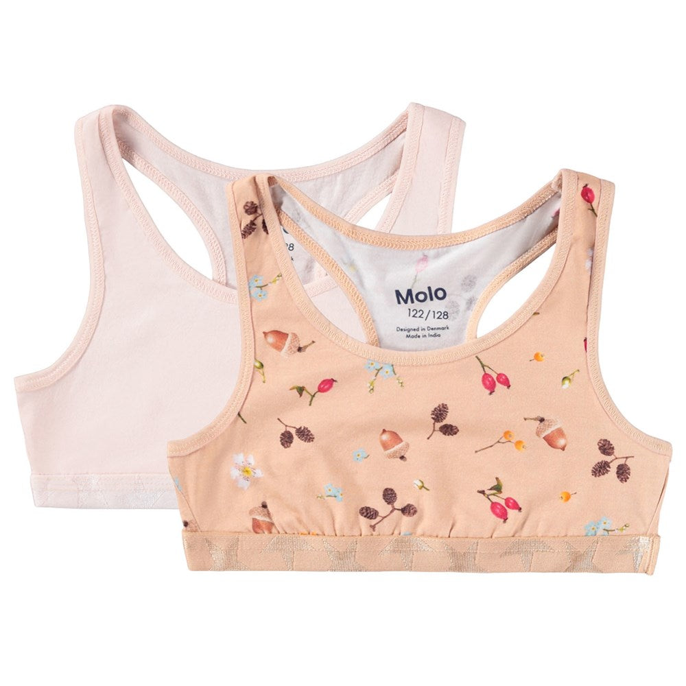 Sætir bómullar toppar frá Molo. Tvennir saman í pakka, annar er einlitur og hinn mynstraður.